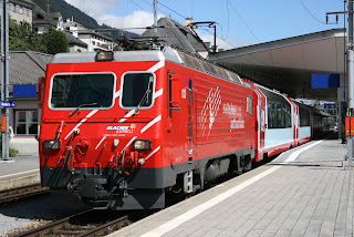 HGe 4/4 II 104 with Glacier Express from Zermatt to Chur, Mompé Tujetsch, 09-09-2011.